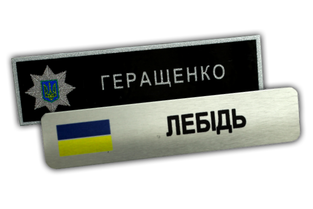 | 20 шт. | 70x40mm, 70x35mm | Булавка | Бейдж алюмінієвий срібло/золото з сублімаційним друком із віконцем |